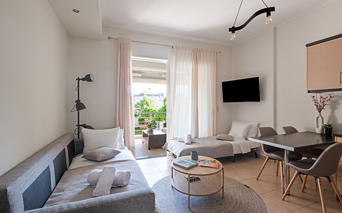 Η minimal διακόσμηση, οι γήινες αποχρώσεις, η Smart TV και ο φυσικός φωτισμός δημιουργούν ένα περιβάλλον φιλόξενο, ήρεμο και πραγματικά ξεκούραστο — ιδανικό για μικρές αποδράσεις ή οικογενειακές διακοπές στην Καλαμάτα.