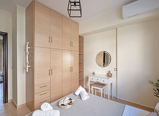 Οργανωμένος με επιπλέον αποθηκευτικούς χώρους, το υπνοδωμάτιο συνδυάζει κομψότητα και πρακτικότητα — για να νιώσετε πραγματικά σαν στο σπίτι σας.
